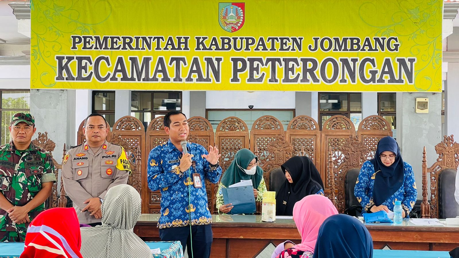 Pendopo Kecamatan Peterongan,(29/11/2023) Penyaluran PMT Stunting Kecamatan Peterongan turut dihadiri Forkopimcam Peterongan.Dalam penyelenggaraan percepatan penurunan stunting, Kecamatan Peterongan telah membentuk Tim Percepatan Penurunan Stunting (TPPS) untuk mengkoordinasikan, mensinergikan dan mengevaluasi penyelenggaraan percepatan penurunan stunting secara efektif, konvergen dan terintegrasi.