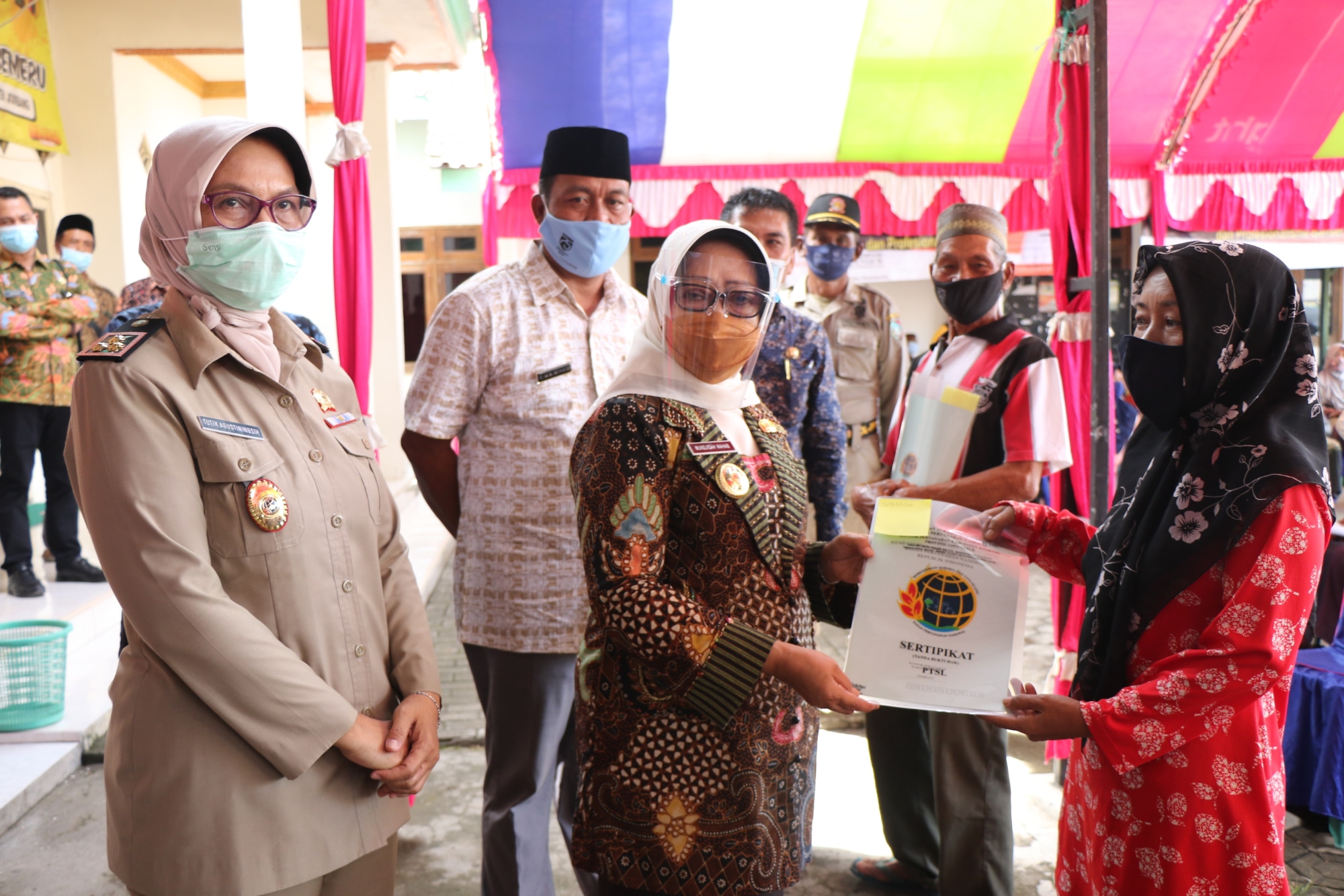 Selasa (29/12/2020) Bupati Jombang Hj. Mundjidah Wahab dan Kepala BPN Kabupaten Jombang, Tutik Agustiningsih S.H, M.Hum beserta Jajaran FORKOPIMCAM Kecamatan Peterongan. Menyerahkan secara simbolis sertifikat hak atas tanah melalui program Pendaftaran Tanah Sistematis Lengkap (PTSL). Pembagian Sertifikat Program PTSL Tahun 2020 ini dibagi menjadi dua tahap yang tahap satu sebanyak 666 sertifikat di bagikan pada September lalu dan pada hari ini Selasa (29/12/2020) sebanyak 572 sertifikat dengan total 1238 sertifikat yang diterima oleh masyrakat Desa Tengaran . Dalam sambutannya Bupati Jombang Hj. Mundjidah Wahab menerangkan bahwa Presiden melalui program ini menginginkan dimasyarakat tidak ada lagi permasalahan sengketa tanah dan dapat dimanfaatkan oleh masyarakat dengan perlindungan hukum tentang tanahnya yang menjadikan masyarakat merasa aman, nyaman dan tenang, serta memiliki tanda bukti kepemilikan tanah. Camat Peterongan, Shollahuddin, SH, M.Si juga menambahkan bahwa dengan adanya pembagian sertifikat program PTSL ini, diharapkan mampu menunjang perekonomian masyarakat, sekaligus legalitas resmi tanah milik masyarakat dan berharap semoga ini bisa memberikan kesejahteraan kepada masyarakat dan masyarakat memiliki bukti kepimilikan tanah berupa sertifikat serta sesuai dengan tujuan dari pelaksanaan program ini dan pembagian sertifikat tanah pada masyarakat, kedepannya para warga masyarakat akan memperoleh jaminan kepastian dan perlindungan hukum hak atas tanah rakyat secara adil dan merata dan semoga desa desa lain di wilayah Kecamatan Peterongan yang belum mendapatkan Program PTSL dapat segera menyusul untuk tutupnya. (Admin/Ptr)
