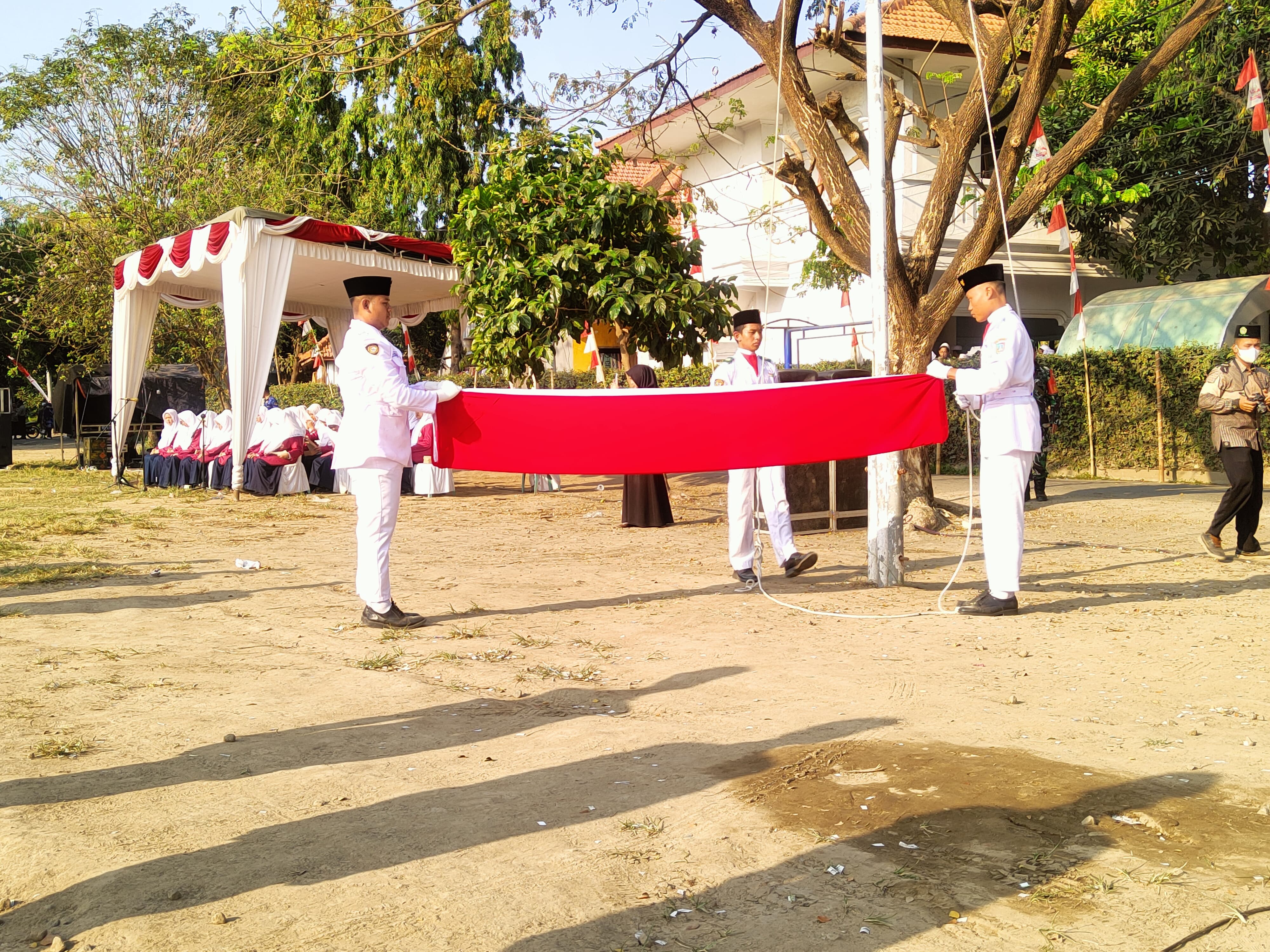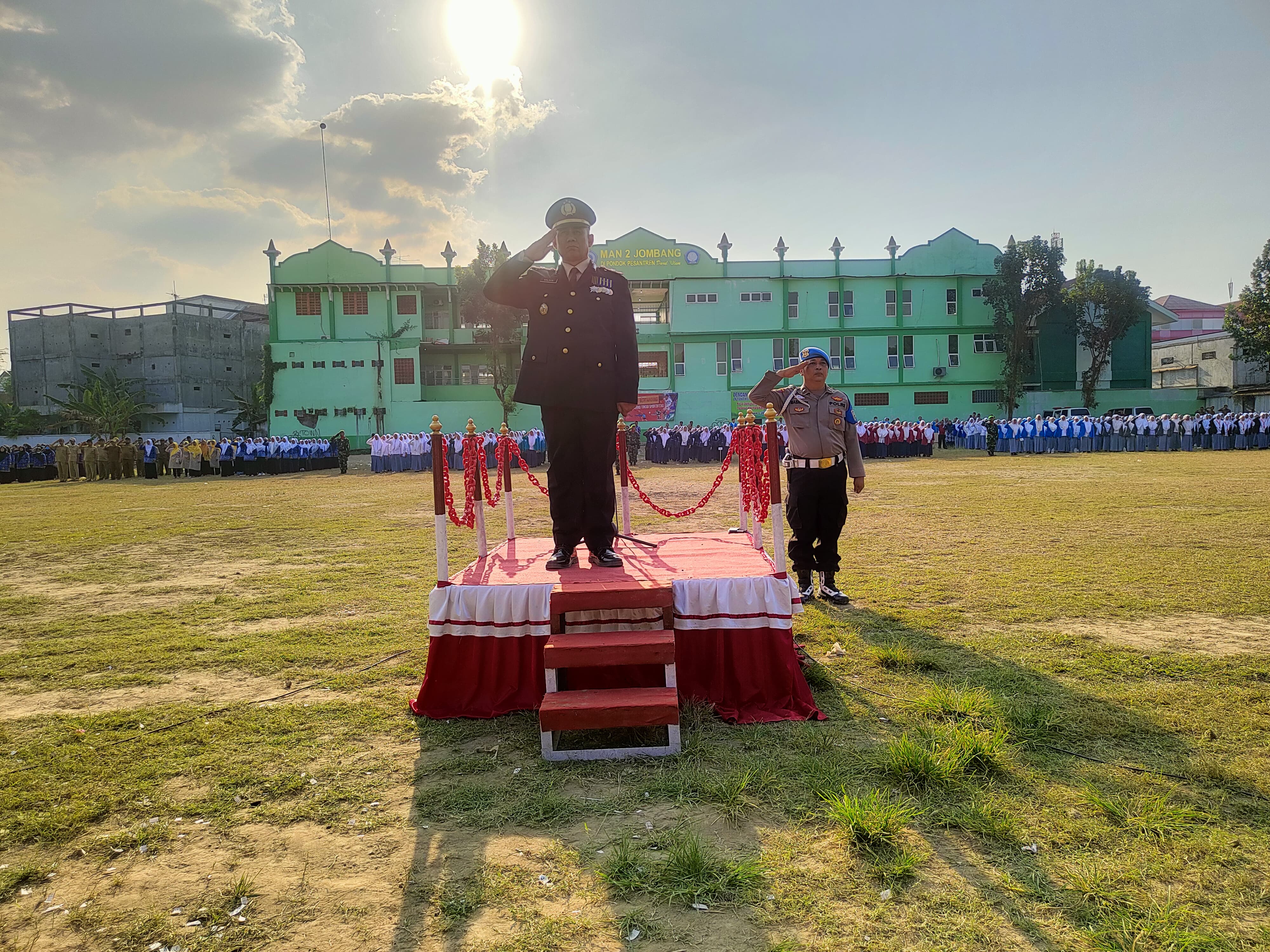 Kapolsek Peterongan Iptu Solihin Budi Santoso, S.H menjadi Inspektur Upacara Penurunan Bendera Merah Putih HUT Republik Indonesia ke 79 di lapangan Pondok Pesantren Darul Ulum Rejoso Kecamatan Peterongan. Sabtu 17 Agustus 2024.